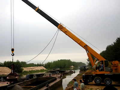 QLYS25SZ“雙動力”液壓輪胎式伸縮臂抓斗起重機是結合汽車起重機功能而改型生產(chǎn)的新式液壓抓斗起重機。該機的作業(yè)和行使均在上車一個操縱室內完成,并可在前后兩側吊載30%(主臂作業(yè)時)起重量行使、移動。