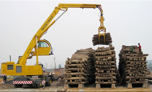 The new "oil and electricity" wood grabbing machine helps paper making, wood-based panel, forest industry
